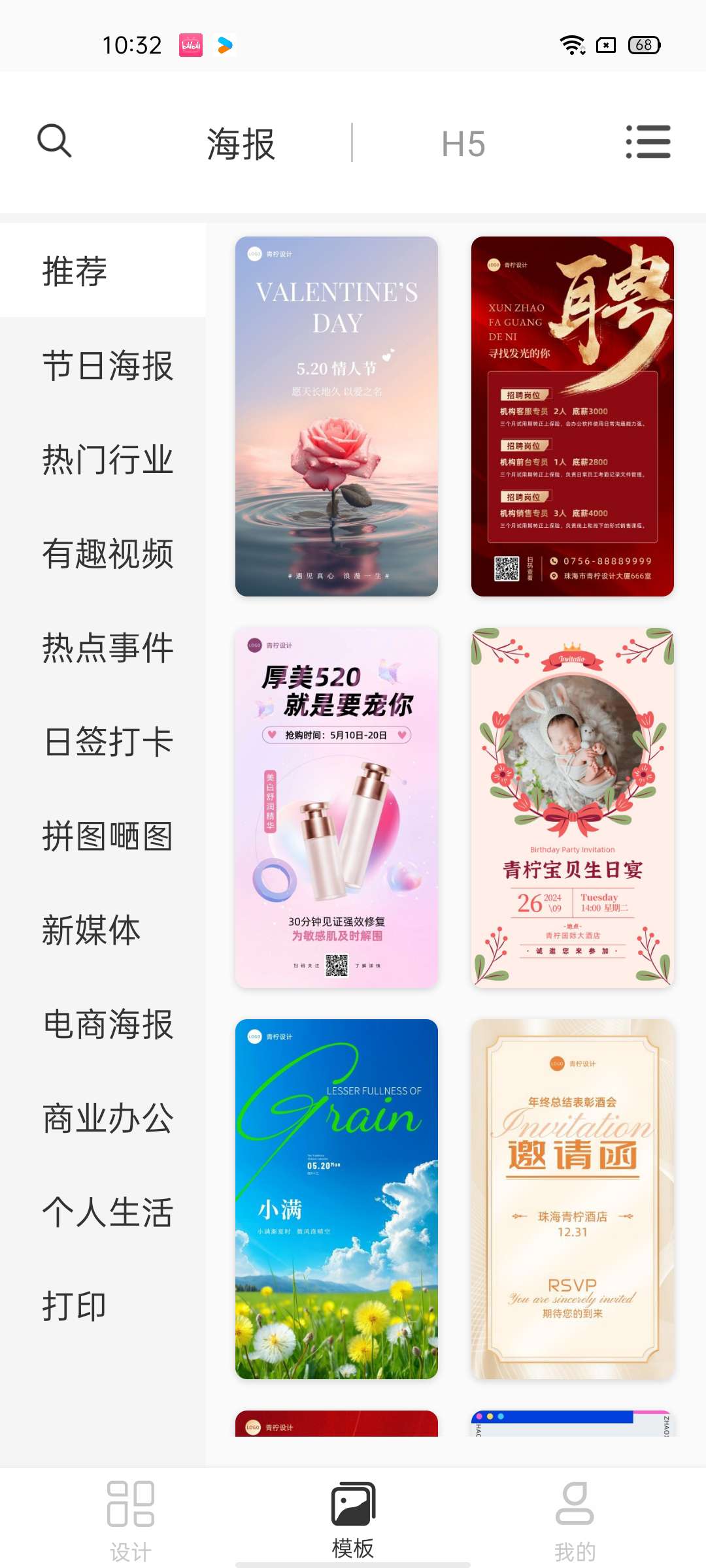 模板丰富,覆盖了市场营销、广告直播、旅游出行、美容美妆等多个行业,打开模板,基本的框架已经设计好了,可以根据需要修改和调整内容,添加边框、替换照片、调整翻转和透明度等功能。
