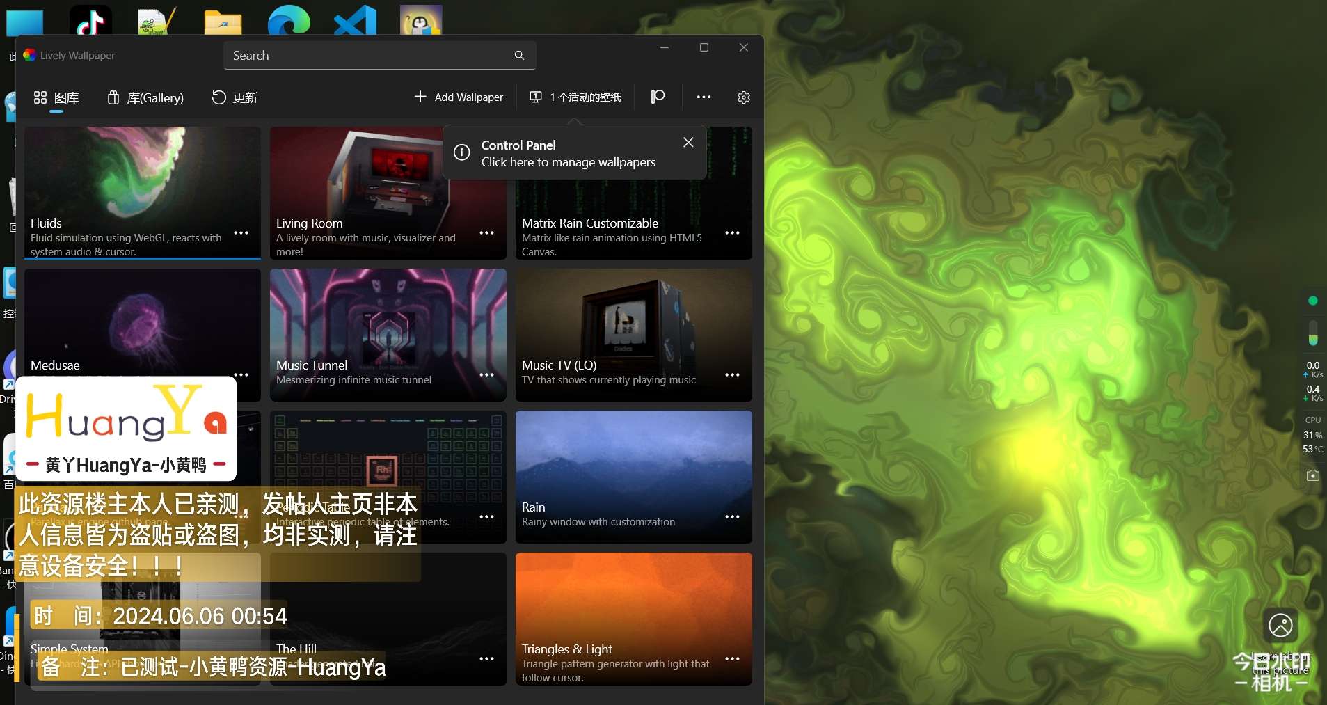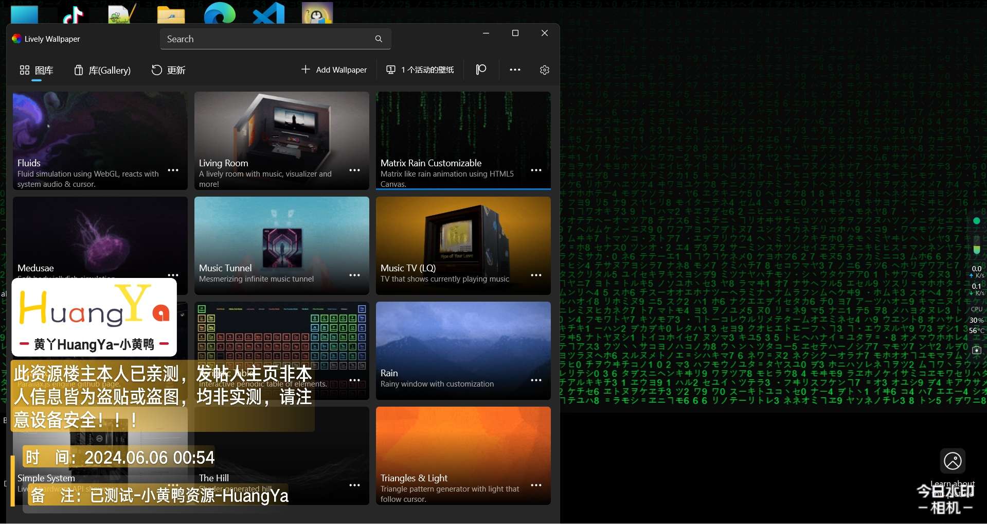 无需依赖steam,功能和Wallpaper Engine类似,并且兼容Wallpaper Engine的视频包文件。软件完全免费