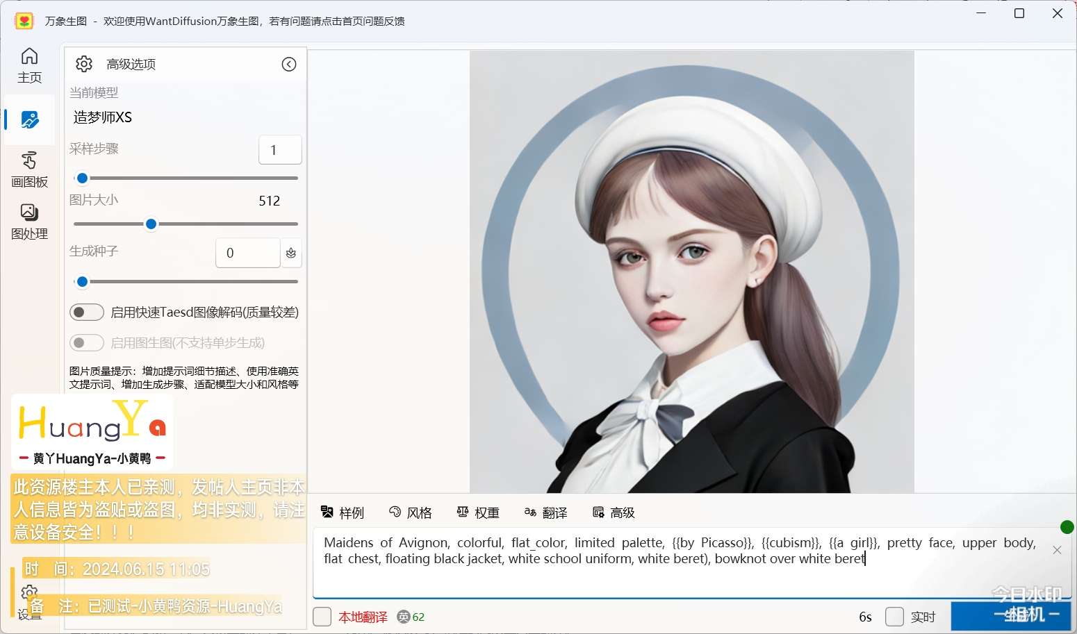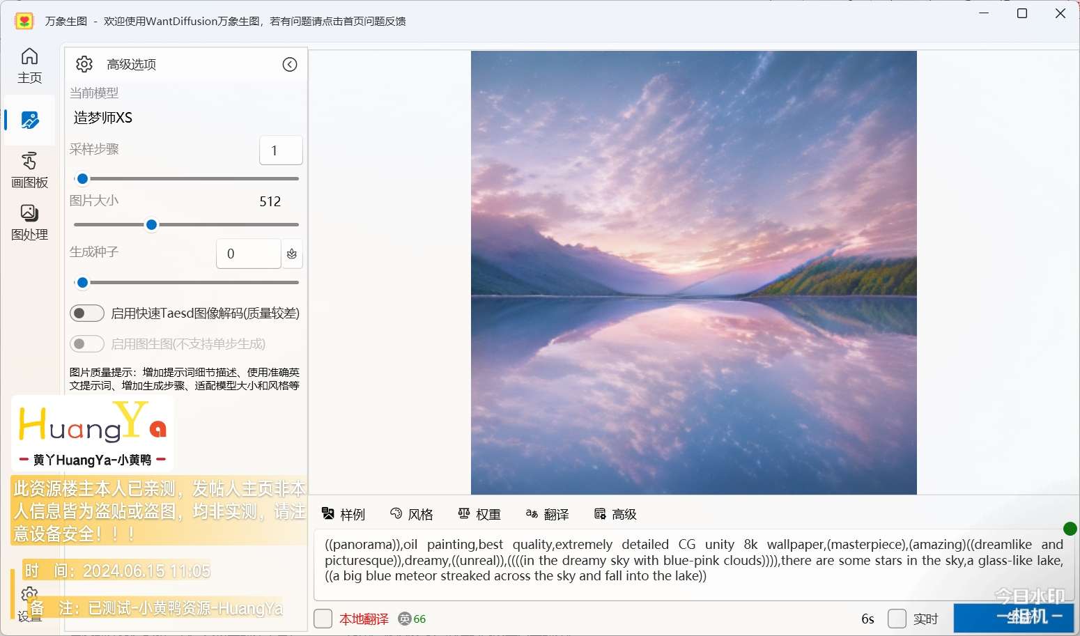 小白都会用的本地模型快速生图 无需联网 硬件要求低 万象生图 是一个windows文生图的软件,本软件支持一键安装即可在普通电脑上快速运行文生图模型,无需复杂配置和GPU硬件。本软件使用简单,支持各种快速生图模型。软件支持Windows7及以上64位操作系统。至少需要4G空闲内存才能良好运行,最好机器内存在16G以上。如果机器内存小于8G,生图速度会较慢。软件生图使用的是CPU,无需GPU即可运行