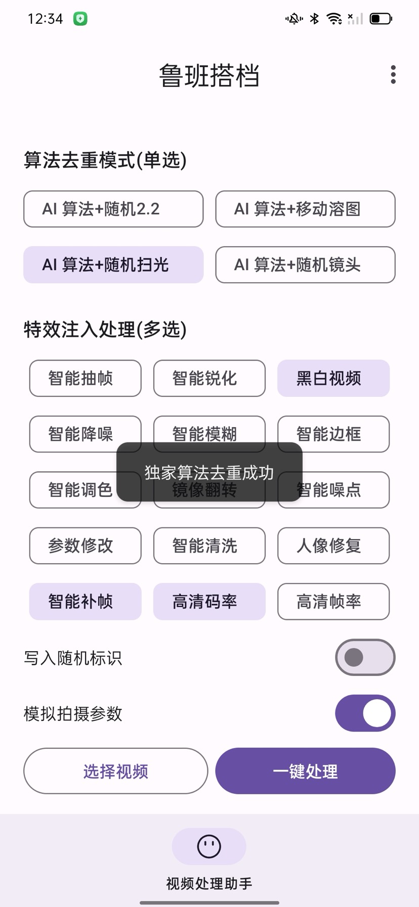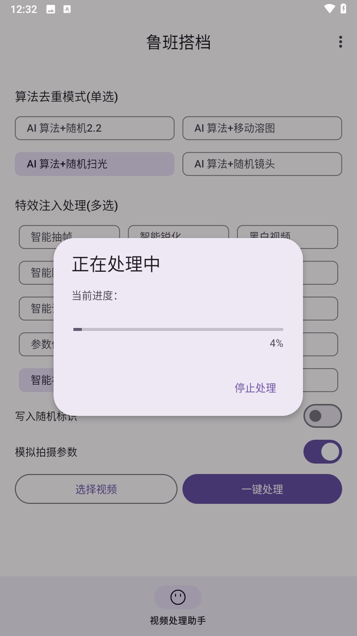 支持一键智能化处理、AI算法、随机扫光、随机镜头、移动溶图、参数修改等诸多二次剪辑功能,能有效的去重,