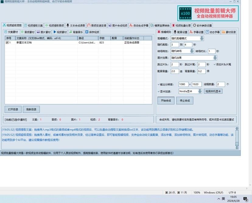 PC便携版 视频批量剪辑大师,全自动剪辑神器,会打字就能做视频