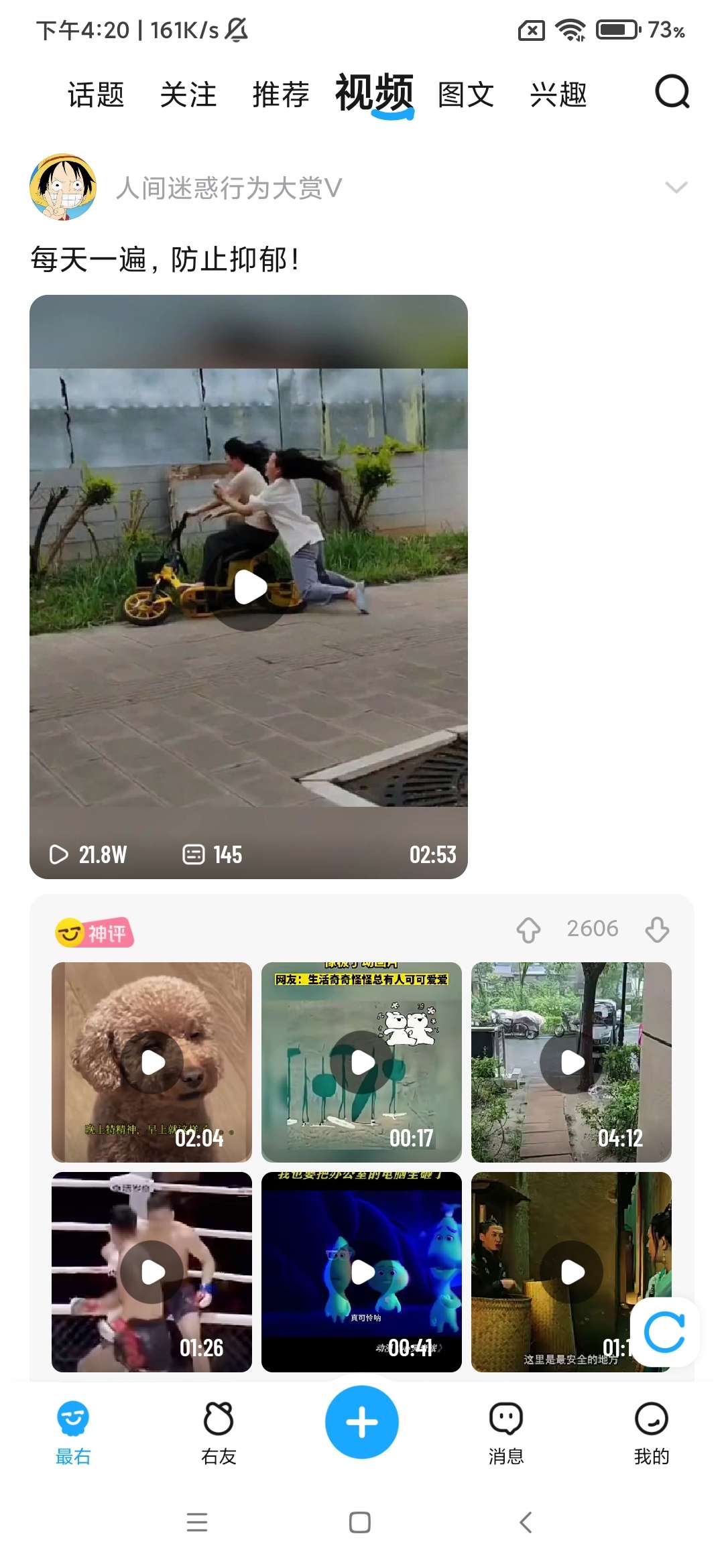 最右app是一个全新的休闲娱乐方式,能够以视频、段子、图片的形式将脑洞大开的内容展现给你,除了文字表情回复,还支持动图、语音、视频回复。这就造成了一个现象,软件内不仅主题帖有看头,里面的评论同样非常有意思,甚至比主题贴还好看,欢迎免费下载体验。