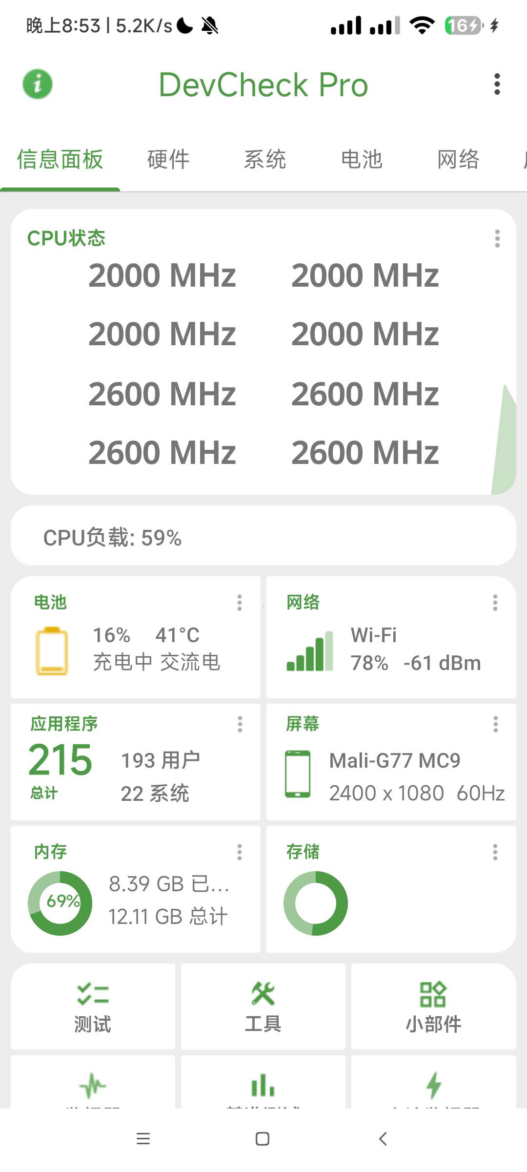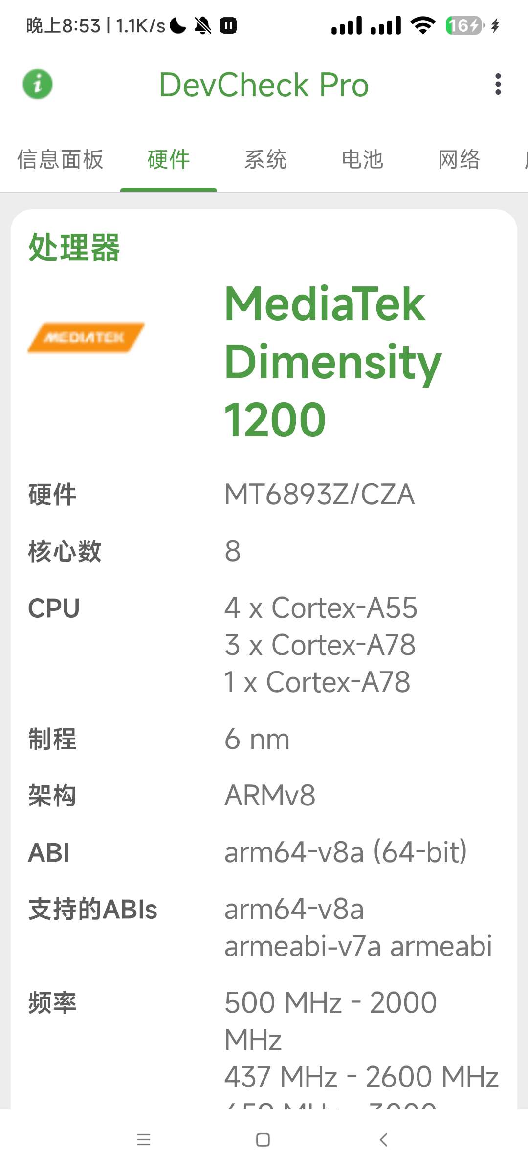 【应用说明】DevCheck安卓设备信息app是一款Google Play商店评分非常不错的系统信息检测的手机硬件工具,这款安卓设备硬件检测工具,可以全面查看安卓设备的各种详细状态,包括:实时监控硬件,获取设备型号,芯片CPU,GPU等,Android系统版本