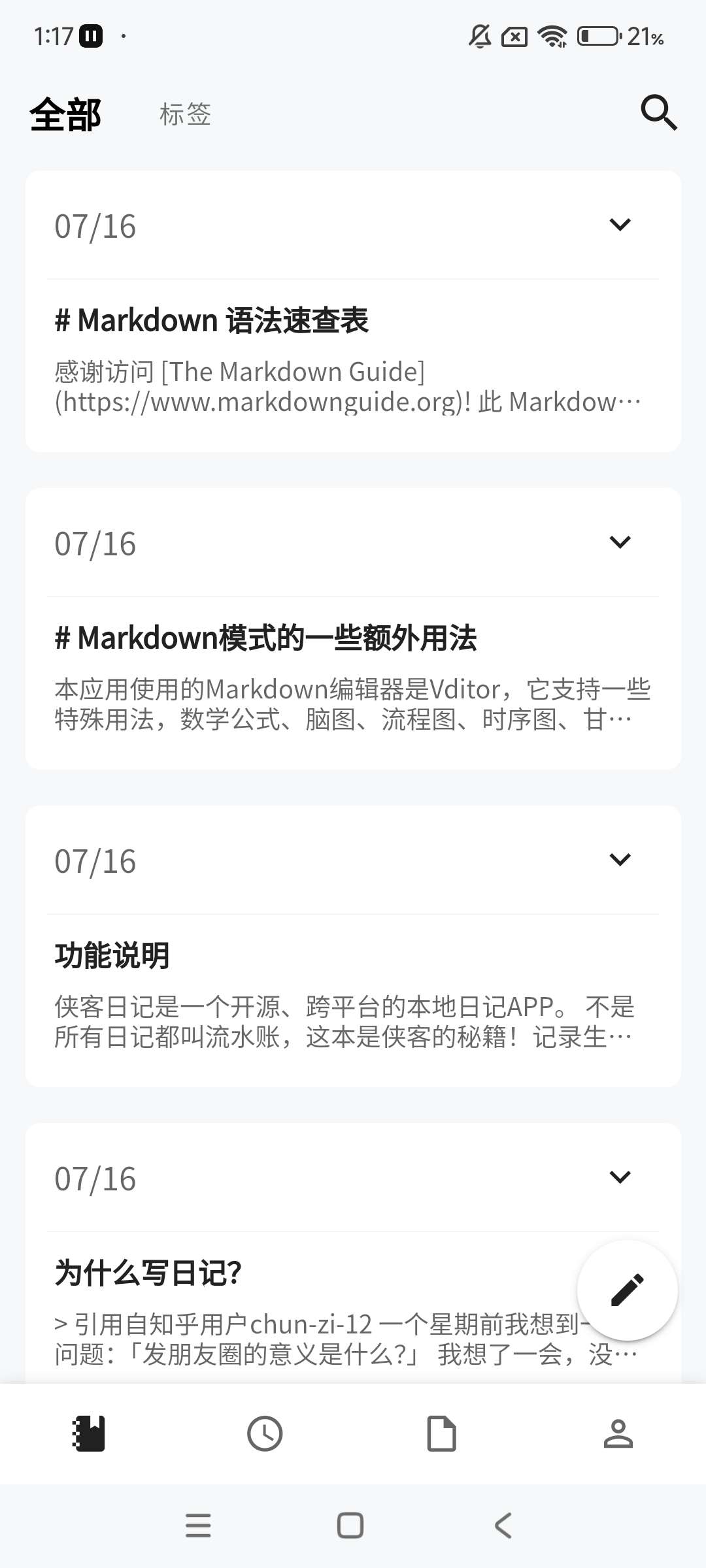 【应用介绍】 侠客日记是开源跨平台日记APP,支持Markdown即时渲染,可插入图片、音频、视频等多媒体内容。极简UI设计,支持多平台、深色模式、多种语言。特色包括隐私保护、多种文件导出格式。提供沉浸式体验,适合记录生活点滴