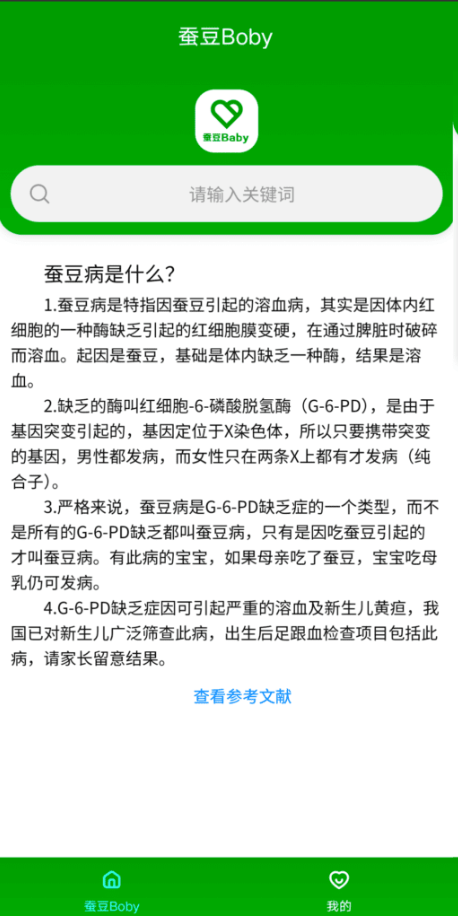 蚕豆Baby是一款专门为蚕豆病宝宝写的禁忌查询小工具,软件用到了sqlite,收集了100多条常见数据,让用户可以学习到更多专业上的饮食健康知识,随时关注身体健康,让用户可以清楚知晓有哪些可用的东西,其中还将蚕豆病遗传知识进行了详情介
