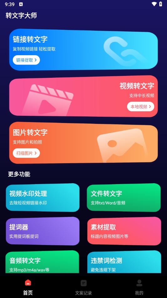 主要支持链接转文字、视频转文字、图片转文字!自媒体人必备!