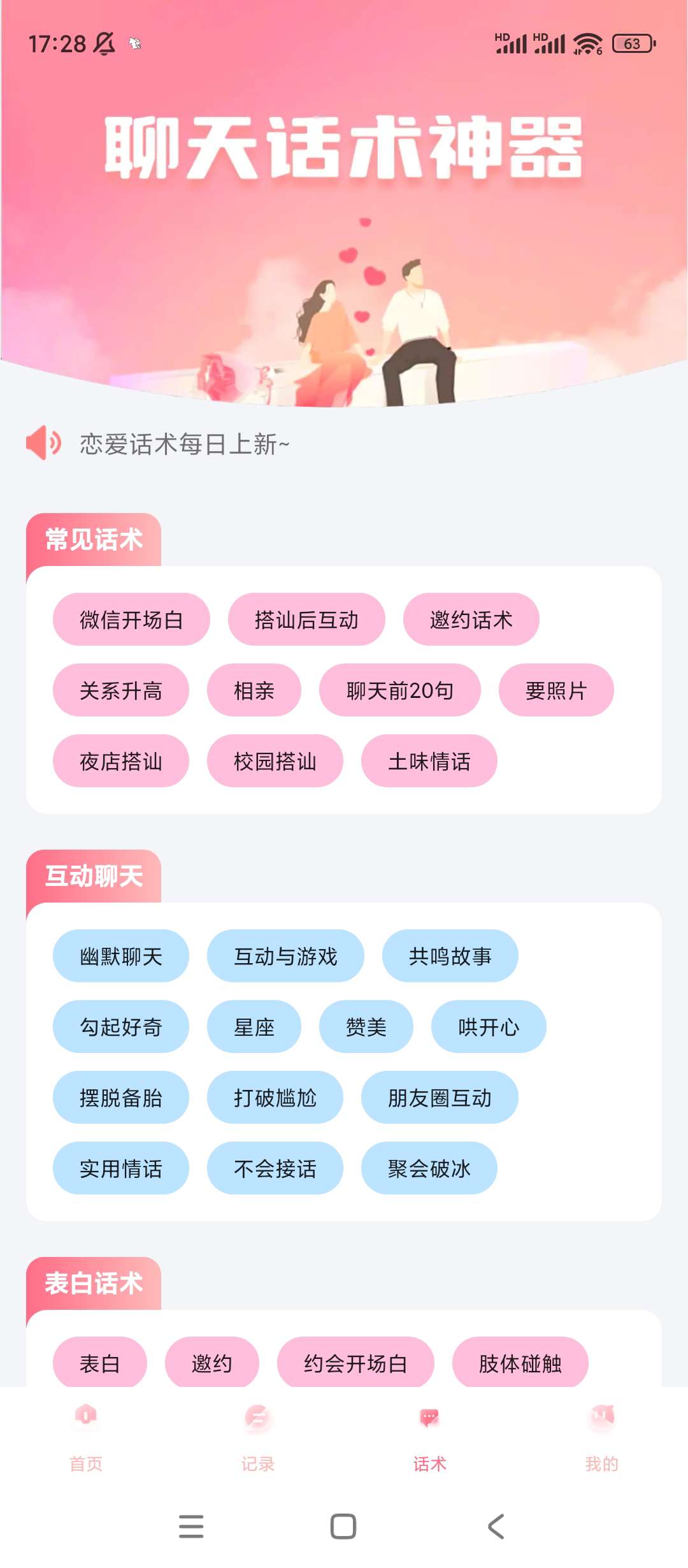【官方介绍】:一款拥有海量恋爱聊天话术、聊天话题、聊天技巧、土味情话大全,