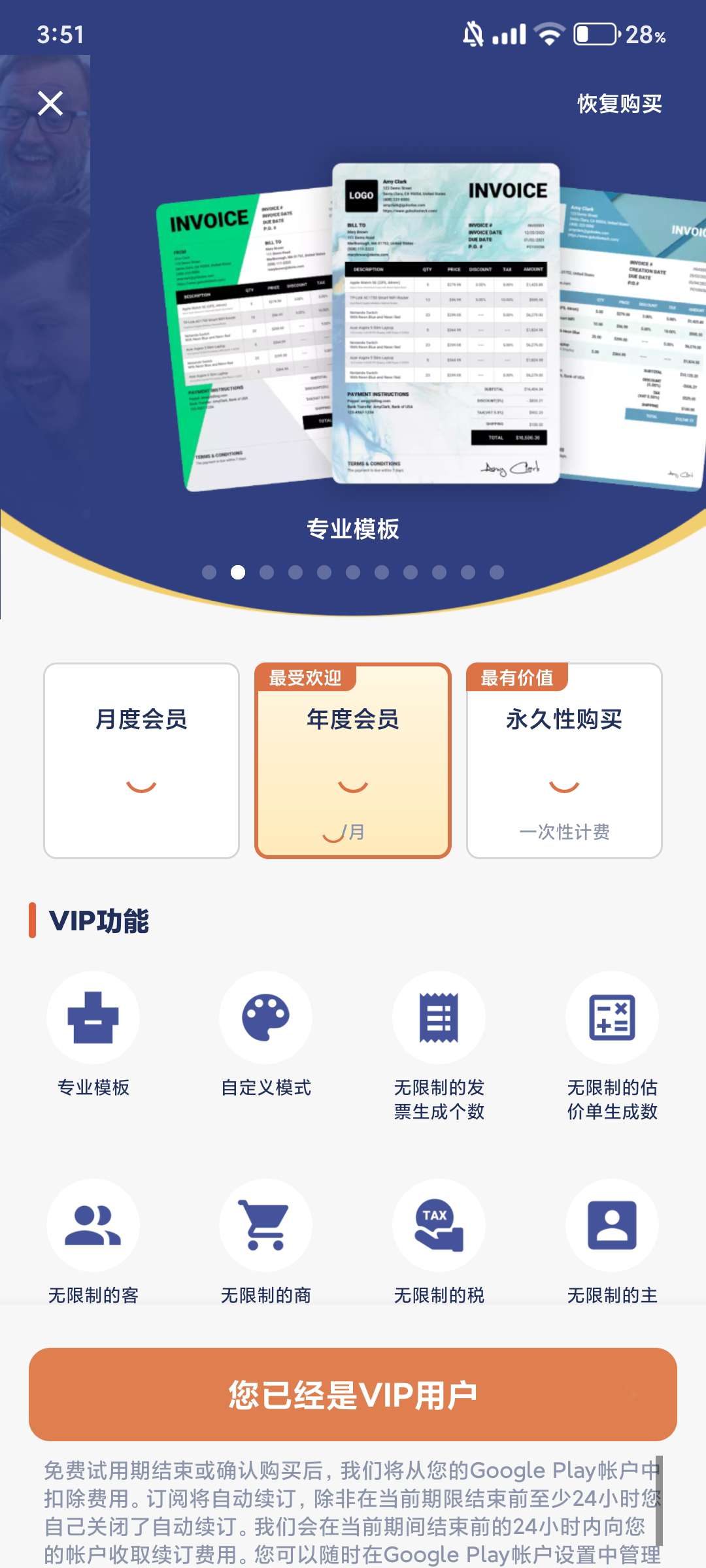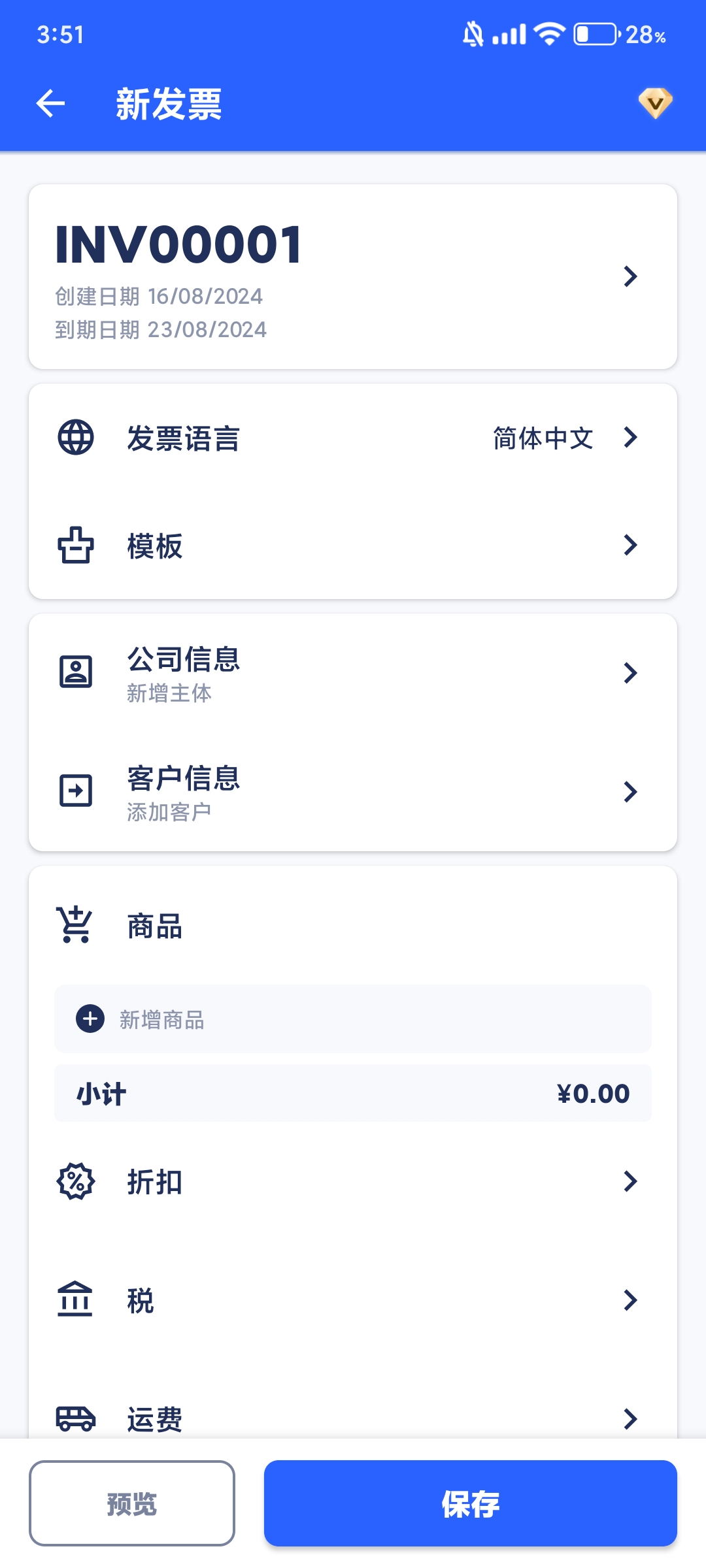 【软件介绍】 发票制作器「Invoice Maker」是一款专为个体经营者、小微企业主等设计的发票和估价单生成应用。它简单易用,支持多货币和格式,提供实时预览和导出功能,支持自定义设置,并内置客户与项目管理器。