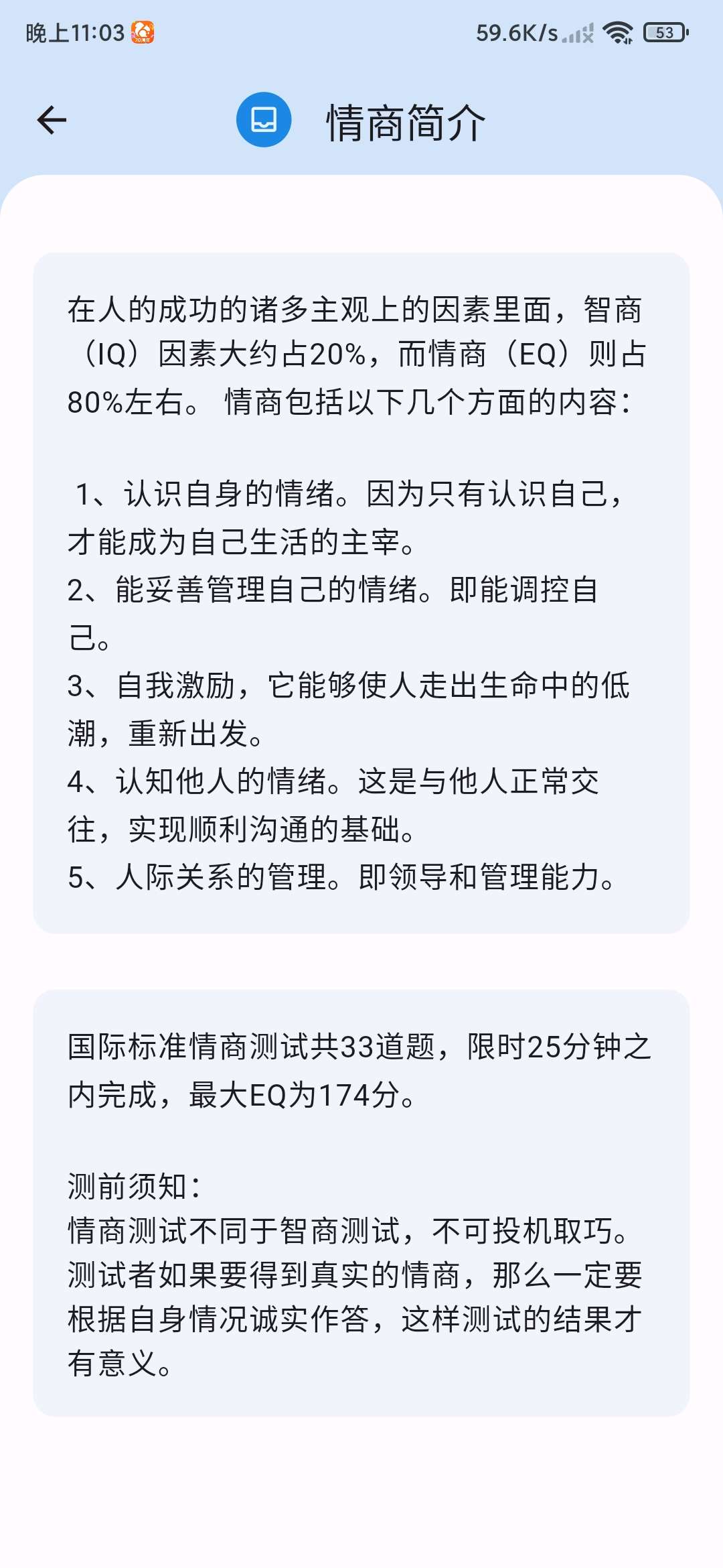 【应用说明】情商测试是一款测试情商的app