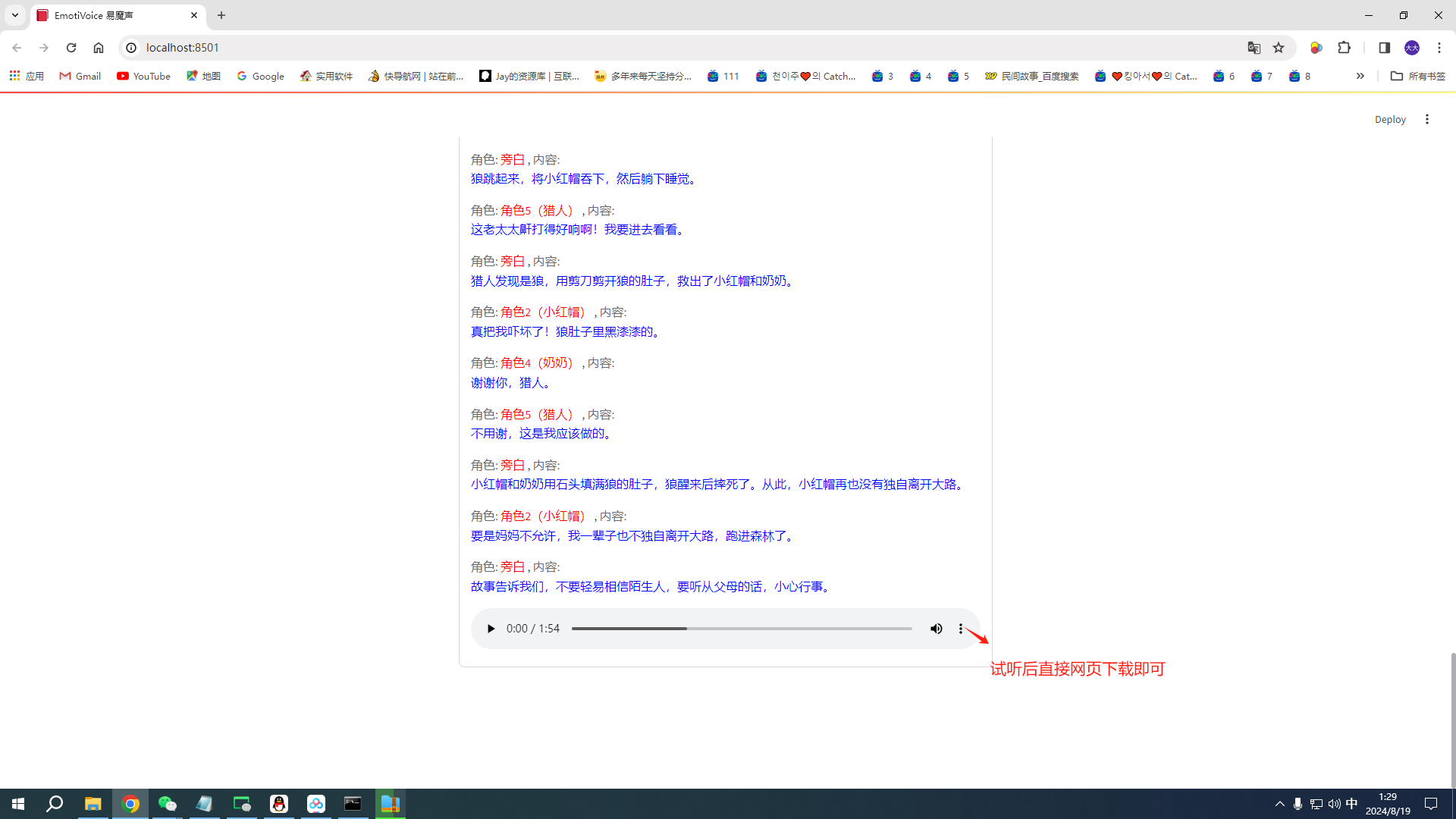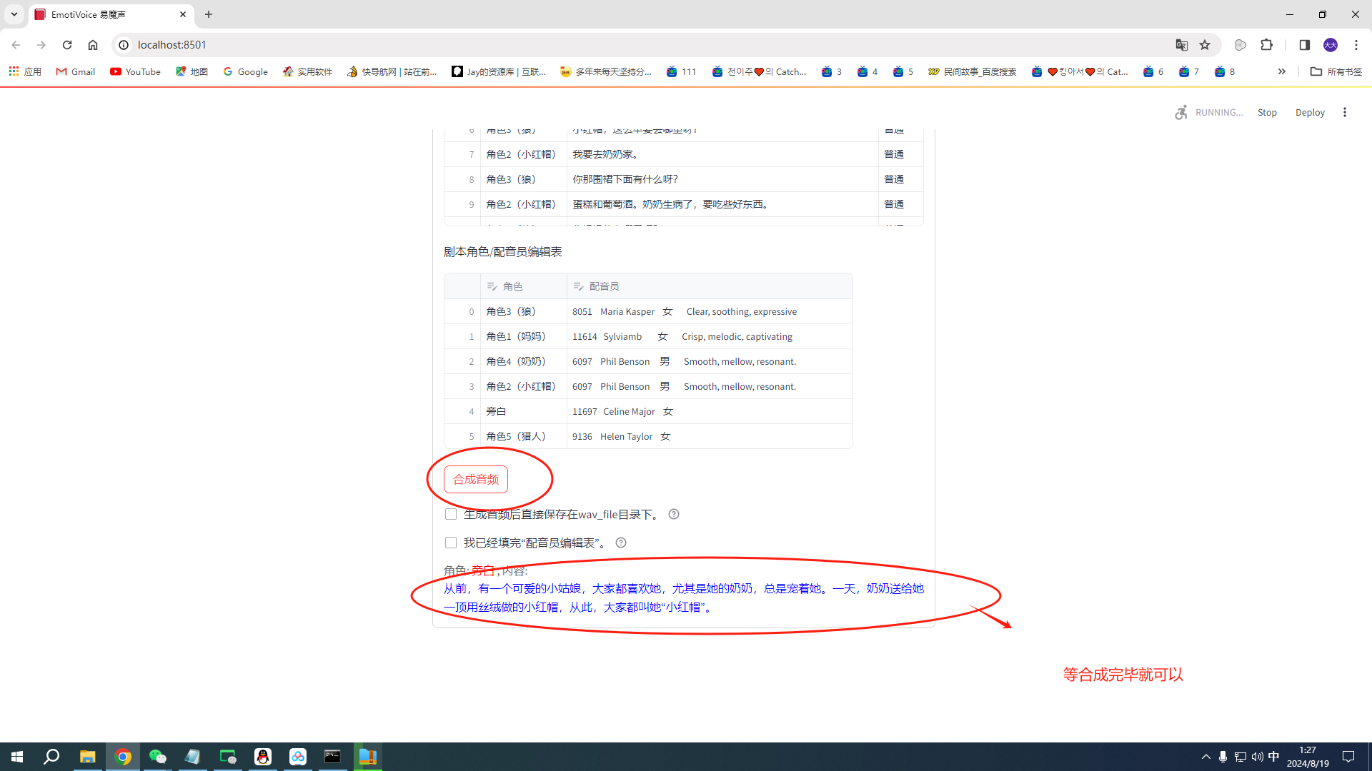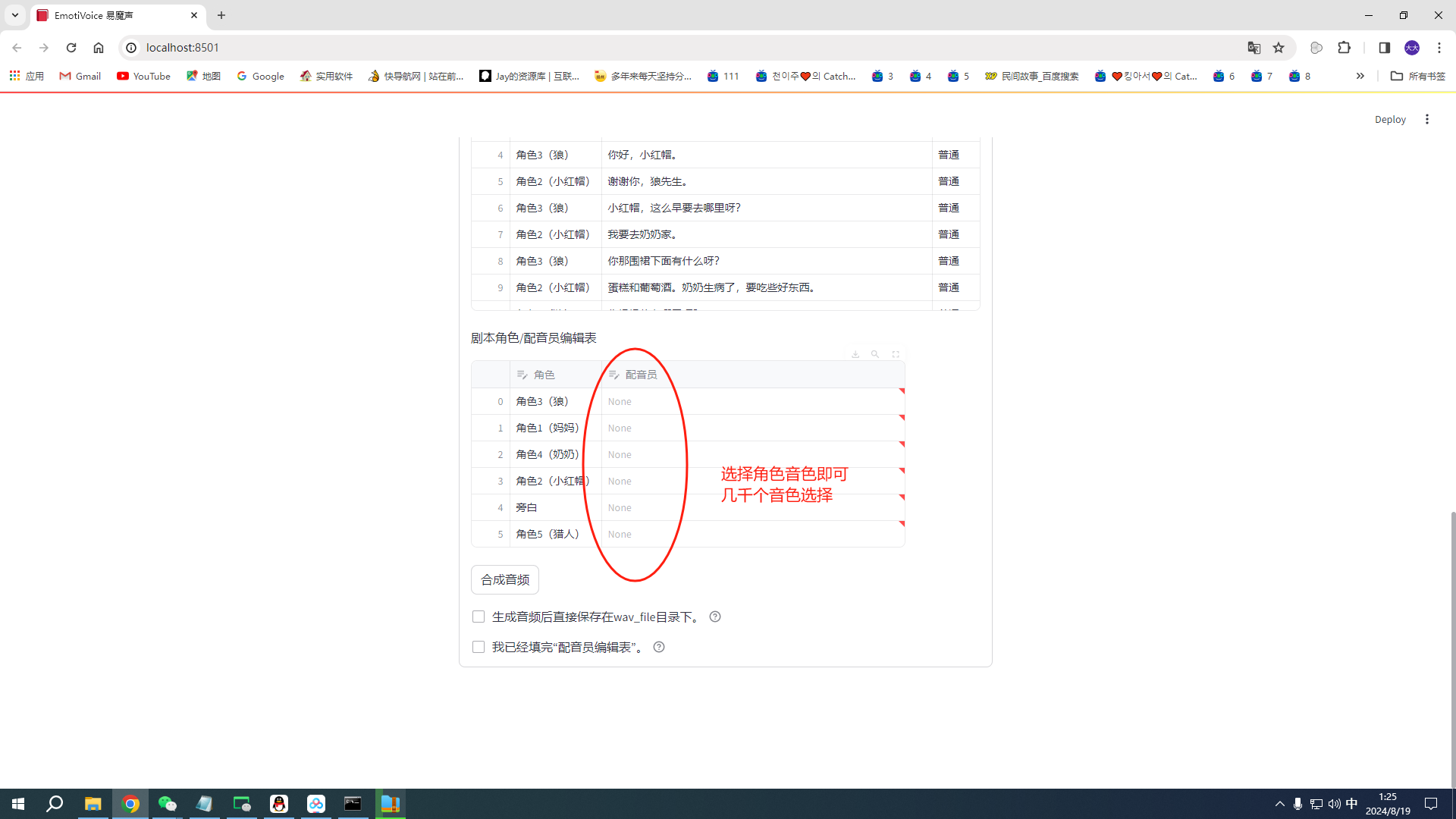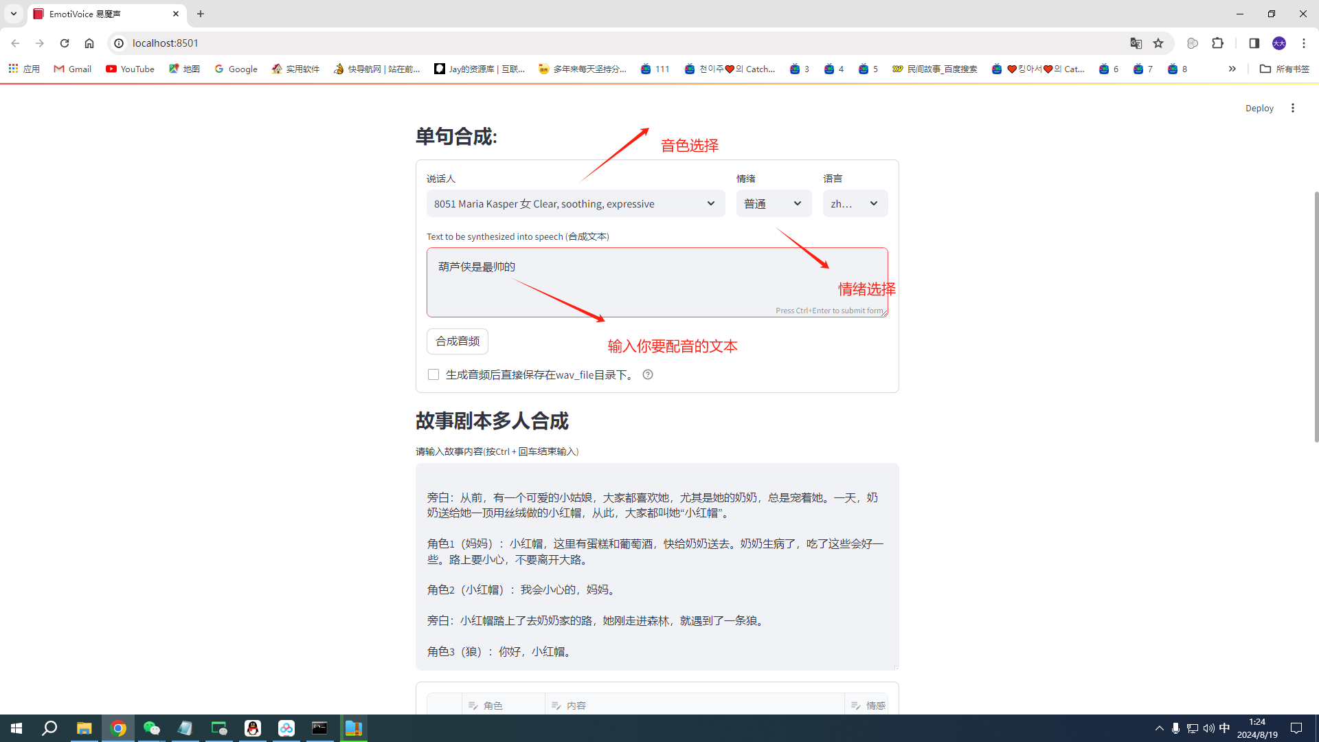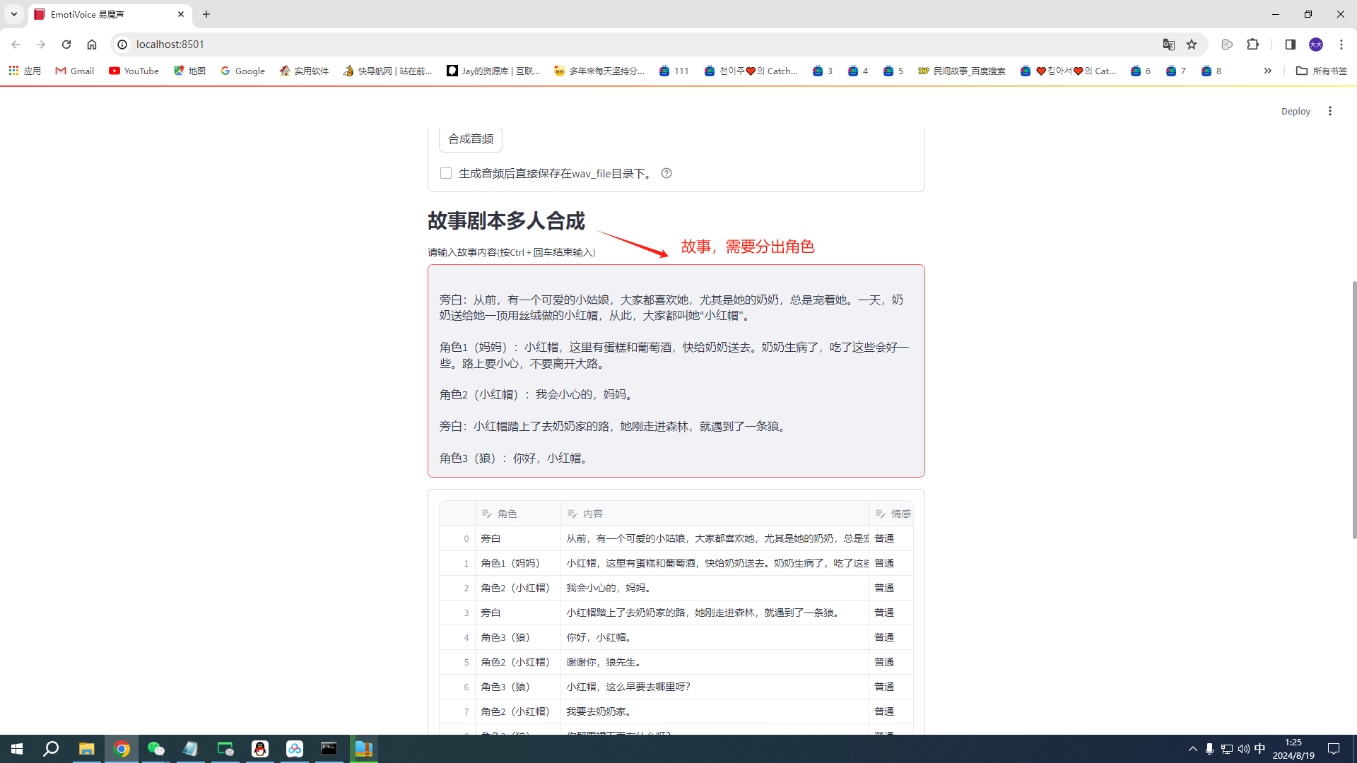 可以单句合成,也可多人合成,比如合成故事等